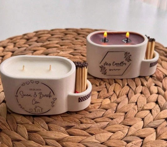 Cement Container with Matchstick Holder | Candle Accessory Storage Set